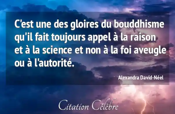 C'est une des gloires du bouddhisme qu'il fait toujours appel à la raison et à la science et non à la foi aveugle ou à l'autorité.