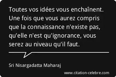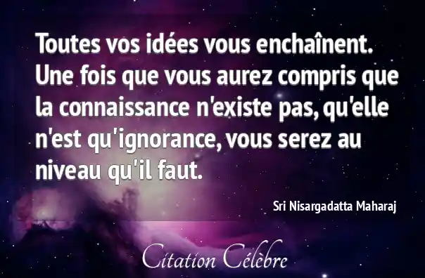 Toutes vos idées vous enchaînent. Une fois que vous aurez compris que la connaissance n'existe pas, qu'elle n'est qu'ignorance, vous serez au niveau qu'il faut.