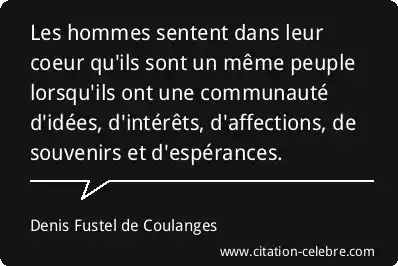 Les hommes sentent dans leur coeur qu'ils sont un même peuple lorsqu'ils ont une communauté d'idées, d'intérêts, d'affections, de souvenirs et d'espérances.