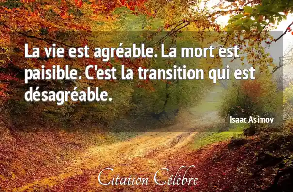 La vie est agréable. La mort est paisible. C'est la transition qui est désagréable.