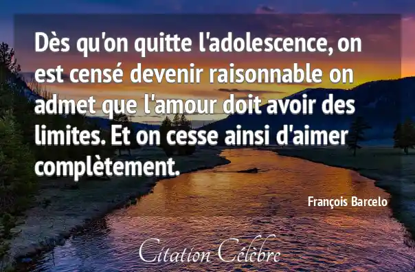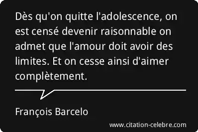 Dès qu'on quitte l'adolescence, on est censé devenir raisonnable on admet que l'amour doit avoir des limites. Et on cesse ainsi d'aimer complètement.