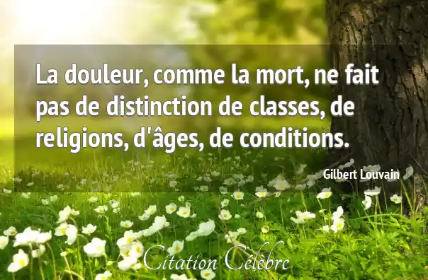 La douleur, comme la mort, ne fait pas de distinction de classes, de religions, d'âges, de conditions.