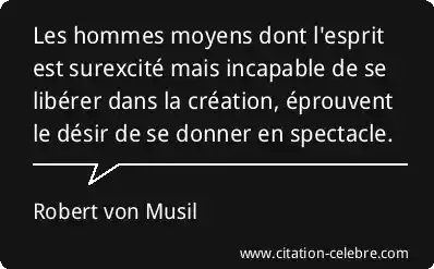 Les hommes moyens dont l'esprit est surexcité mais incapable de se libérer dans la création, éprouvent le désir de se donner en spectacle.