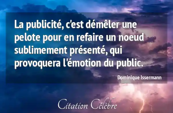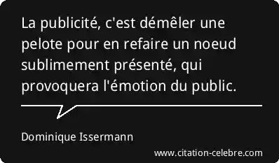 La publicité, c'est démêler une pelote pour en refaire un noeud sublimement présenté, qui provoquera l'émotion du public.