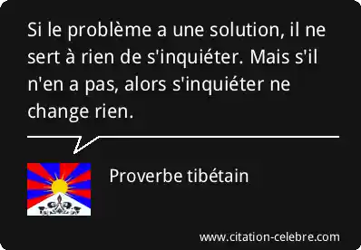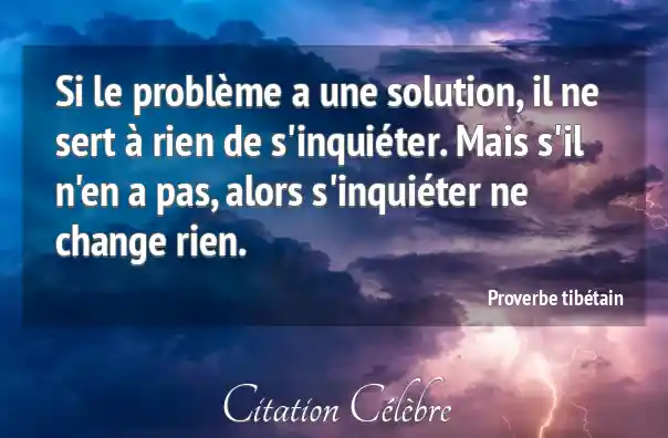 Si le problème a une solution, il ne sert à rien de s'inquiéter. Mais s'il n'en a pas, alors s'inquiéter ne change rien.
