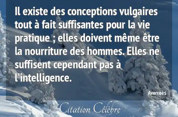 Il existe des conceptions vulgaires tout à fait suffisantes pour la vie pratique ; elles doivent même être la nourriture des hommes. Elles ne suffisent cependant pas à l'intelligence.