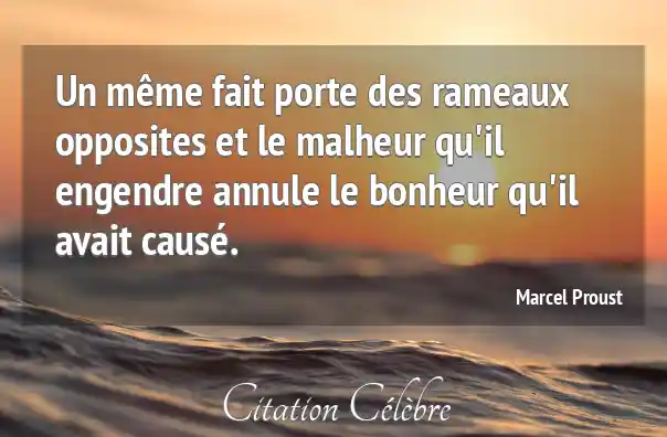Un même fait porte des rameaux opposites et le malheur qu'il engendre annule le bonheur qu'il avait causé.