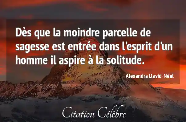 Savoir comment être seul et non dans la solitude revient à faire la somme de la sagesse et de la religion.