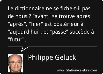 Le dictionnaire ne se fiche-t-il pas de nous ? "avant" se trouve après "après", "hier" est postérieur à "aujourd'hui", et "passé" succède à "futur".