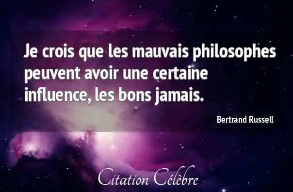 Je crois que les mauvais philosophes peuvent avoir une certaine influence, les bons jamais.