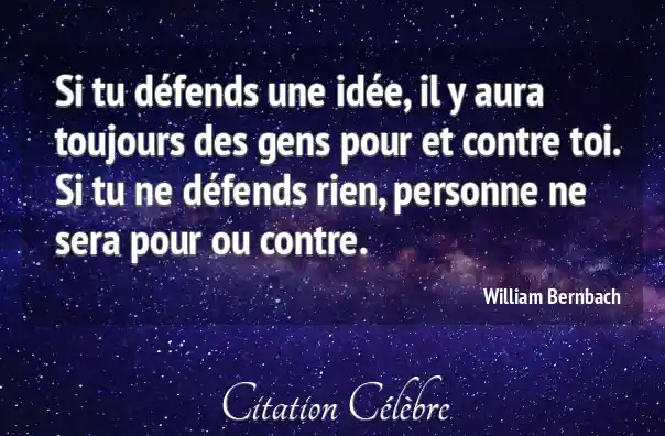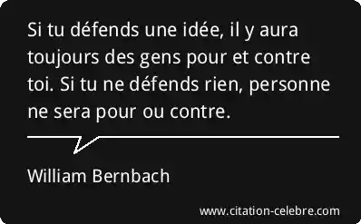 Si tu défends une idée, il y aura toujours des gens pour et contre toi. Si tu ne défends rien, personne ne sera pour ou contre.