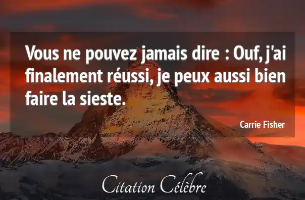 Vous ne pouvez jamais dire : Ouf, j'ai finalement réussi, je peux aussi bien faire la sieste.