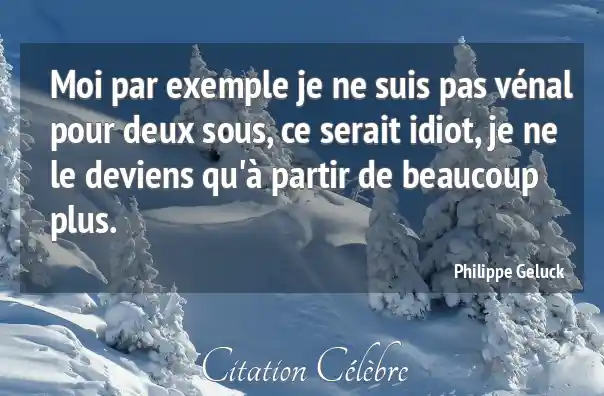 Moi par exemple je ne suis pas vénal pour deux sous, ce serait idiot, je ne le deviens qu'à partir de beaucoup plus.