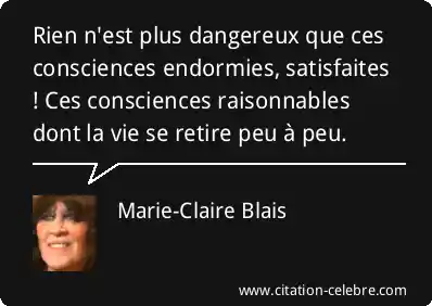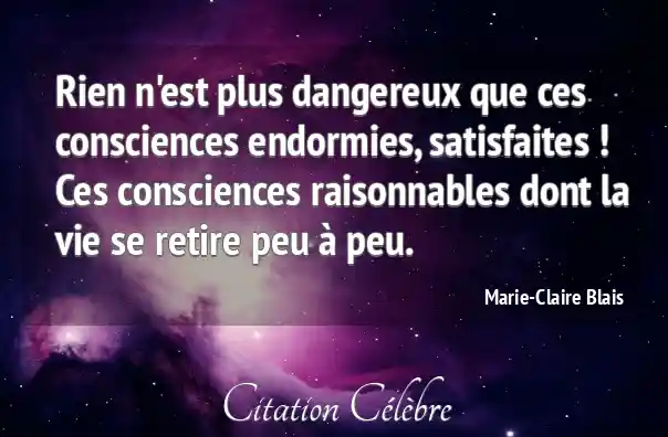 Rien n'est plus dangereux que ces consciences endormies, satisfaites ! Ces consciences raisonnables dont la vie se retire peu à peu.
