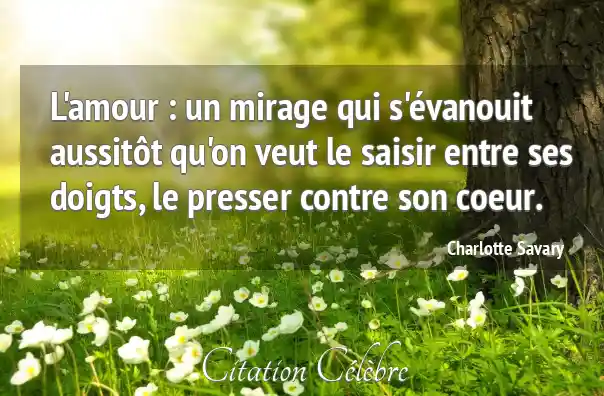 L'amour : un mirage qui s'évanouit aussitôt qu'on veut le saisir entre ses doigts, le presser contre son coeur.