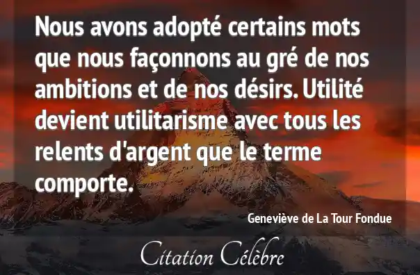 Nous avons adopté certains mots que nous façonnons au gré de nos ambitions et de nos désirs. Utilité devient utilitarisme avec tous les relents d'argent que le terme comporte.