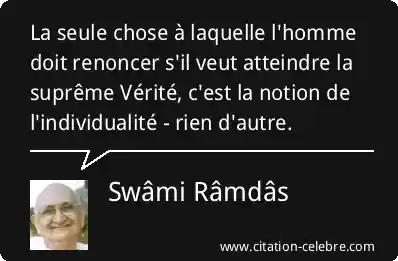 La seule chose à laquelle l'homme doit renoncer s'il veut atteindre la suprême Vérité, c'est la notion de l'individualité - rien d'autre.