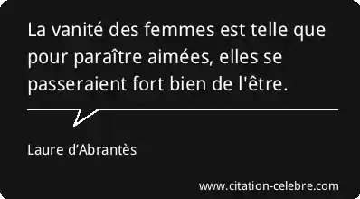 La vanité des femmes est telle que pour paraître aimées, elles se passeraient fort bien de l'être.
