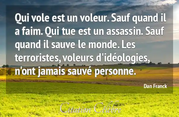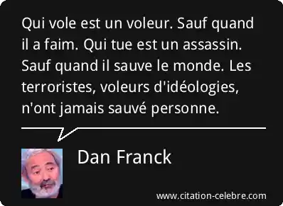 Qui vole est un voleur. Sauf quand il a faim. Qui tue est un assassin. Sauf quand il sauve le monde. Les terroristes, voleurs d'idéologies, n'ont jamais sauvé personne.