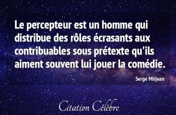 Le percepteur est un homme qui distribue des rôles écrasants aux contribuables sous prétexte qu'ils aiment souvent lui jouer la comédie.