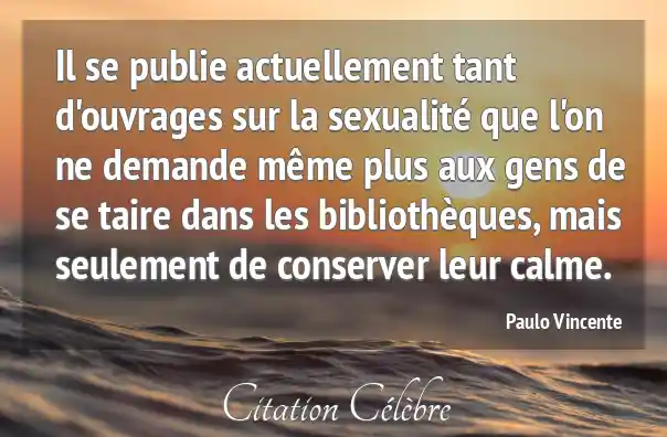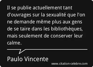Il se publie actuellement tant d'ouvrages sur la sexualité que l'on ne demande même plus aux gens de se taire dans les bibliothèques, mais seulement de conserver leur calme.