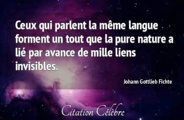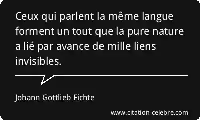 Ceux qui parlent la même langue forment un tout que la pure nature a lié par avance de mille liens invisibles.