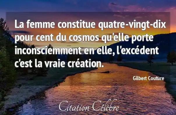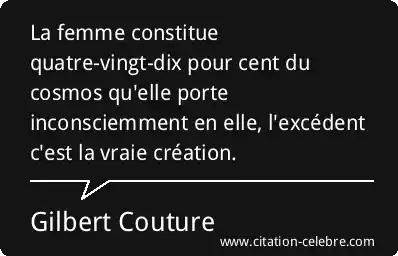 La femme constitue quatre-vingt-dix pour cent du cosmos qu'elle porte inconsciemment en elle, l'excédent c'est la vraie création.