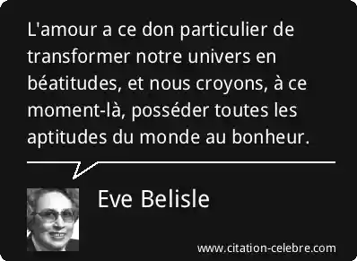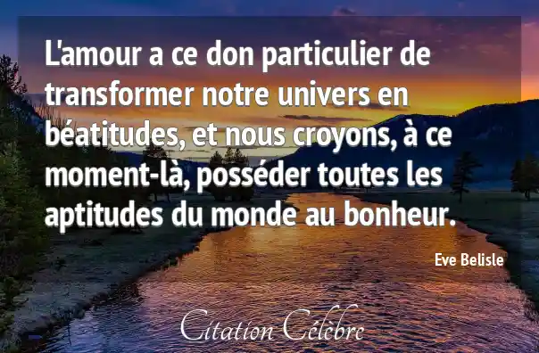 L'amour a ce don particulier de transformer notre univers en béatitudes, et nous croyons, à ce moment-là, posséder toutes les aptitudes du monde au bonheur.