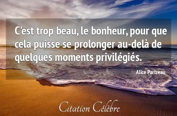 C'est trop beau, le bonheur, pour que cela puisse se prolonger au-delà de quelques moments privilégiés.