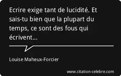 Ecrire exige tant de lucidité. Et sais-tu bien que la plupart du temps, ce sont des fous qui écrivent...