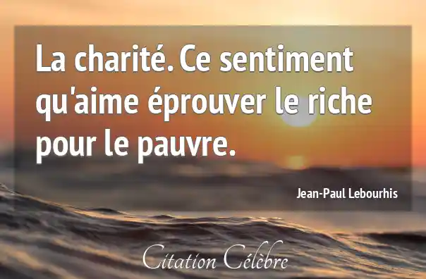 La charité. Ce sentiment qu'aime éprouver le riche pour le pauvre.