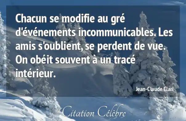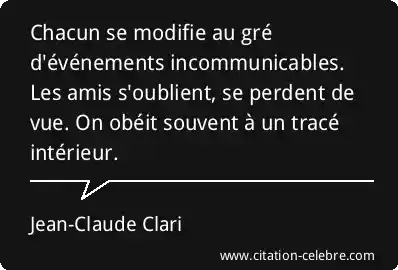 Chacun se modifie au gré d'événements incommunicables. Les amis s'oublient, se perdent de vue. On obéit souvent à un tracé intérieur.