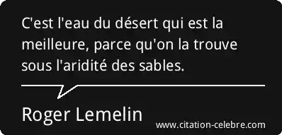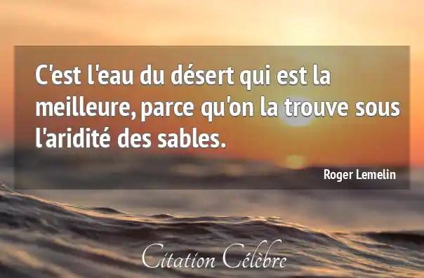 C'est l'eau du désert qui est la meilleure, parce qu'on la trouve sous l'aridité des sables.