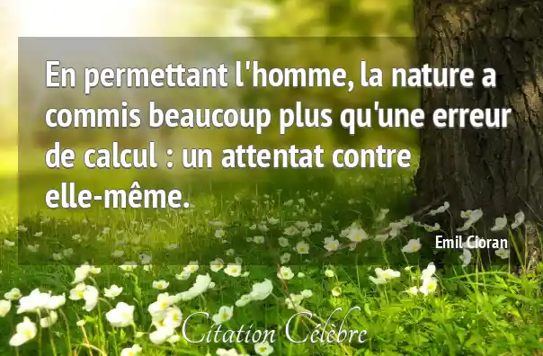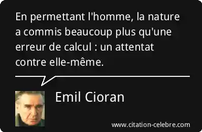 En permettant l'homme, la nature a commis beaucoup plus qu'une erreur de calcul : un attentat contre elle-même.