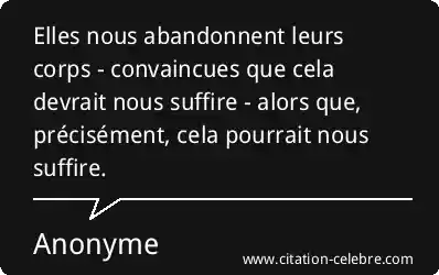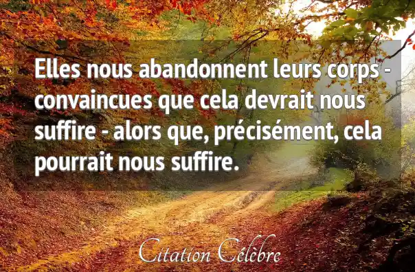 Elles nous abandonnent leurs corps - convaincues que cela devrait nous suffire - alors que, précisément, cela pourrait nous suffire.