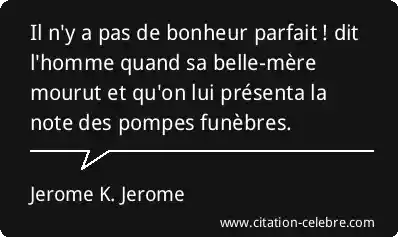 Il n'y a pas de bonheur parfait ! dit l'homme quand sa belle-mère mourut et qu'on lui présenta la note des pompes funèbres.