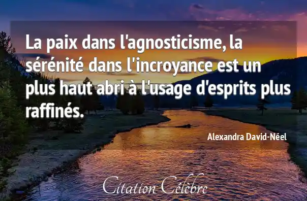 La paix dans l'agnosticisme, la sérénité dans l'incroyance est un plus haut abri à l'usage d'esprits plus raffinés.