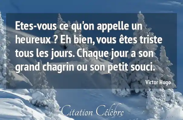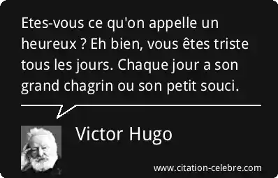 Etes-vous ce qu'on appelle un heureux ? Eh bien, vous êtes triste tous les jours. Chaque jour a son grand chagrin ou son petit souci.