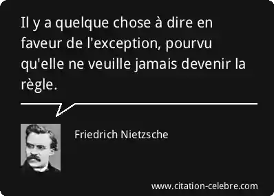 Il y a quelque chose à dire en faveur de l'exception, pourvu qu'elle ne veuille jamais devenir la règle.