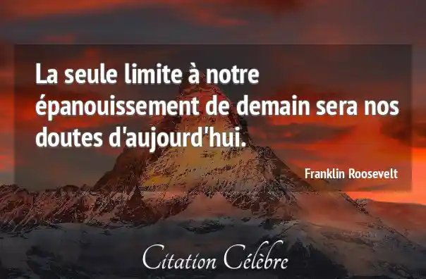 La seule limite à notre épanouissement de demain sera nos doutes d'aujourd'hui.