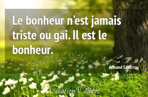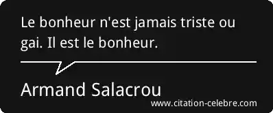 Le bonheur n'est jamais triste ou gai. Il est le bonheur.