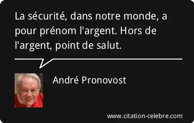 La sécurité, dans notre monde, a pour prénom l'argent. Hors de l'argent, point de salut.