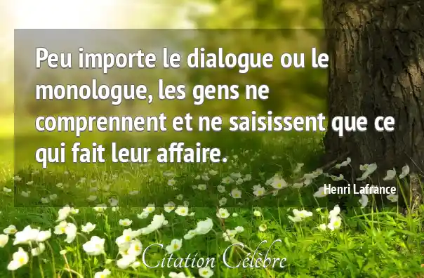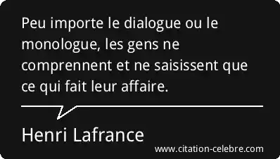 Peu importe le dialogue ou le monologue, les gens ne comprennent et ne saisissent que ce qui fait leur affaire.