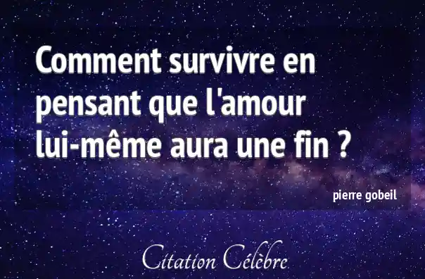 Citation Pierre Gobeil amour : Comment survivre en pensant que l'amour lui-même aura une fin...