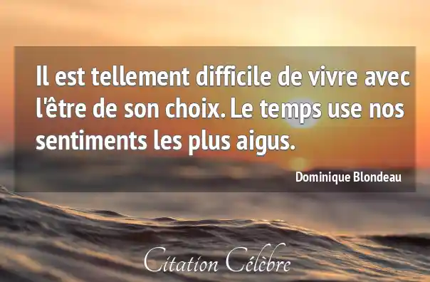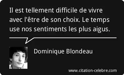 Il est tellement difficile de vivre avec l'être de son choix. Le temps use nos sentiments les plus aigus.