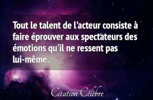 Tout le talent de l'acteur consiste à faire éprouver aux spectateurs des émotions qu'il ne ressent pas lui-même.