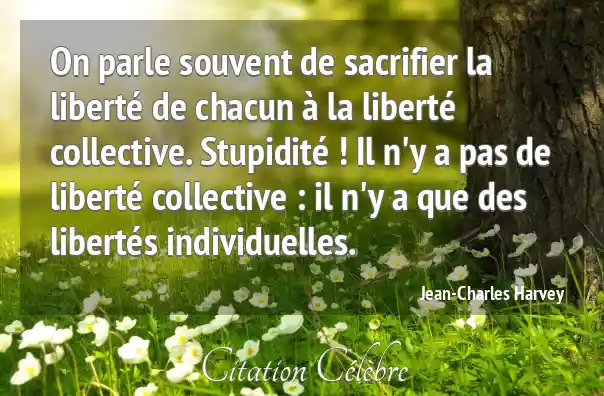 On parle souvent de sacrifier la liberté de chacun à la liberté collective. Stupidité ! Il n'y a pas de liberté collective : il n'y a que des libertés individuelles.