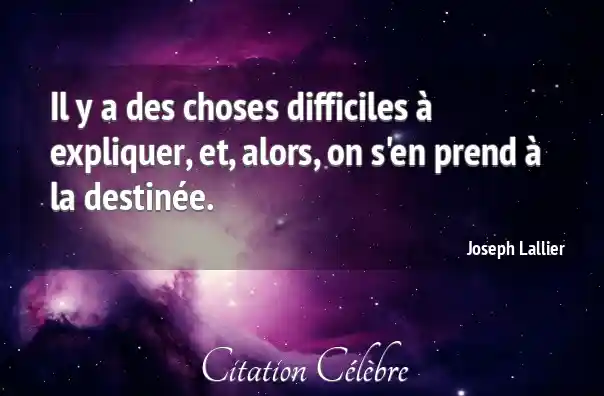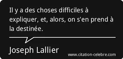 Il y a des choses difficiles à expliquer, et, alors, on s'en prend à la destinée.