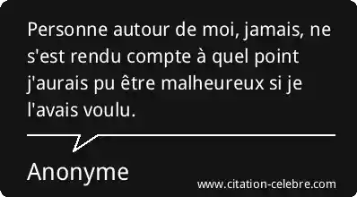 Personne autour de moi, jamais, ne s'est rendu compte à quel point j'aurais pu être malheureux si je l'avais voulu.