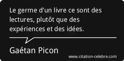 Le germe d'un livre ce sont des lectures, plutôt que des expériences et des idées.